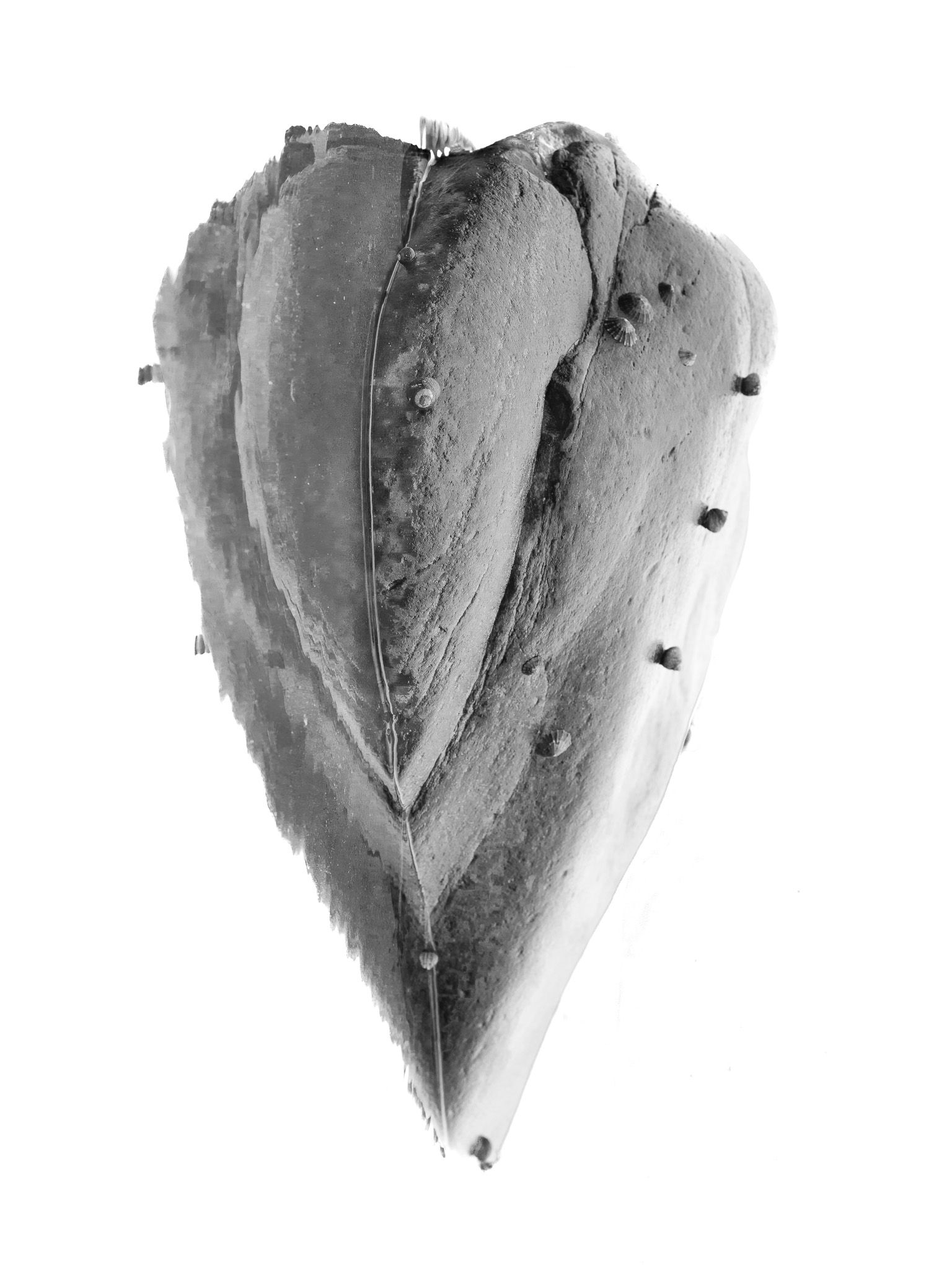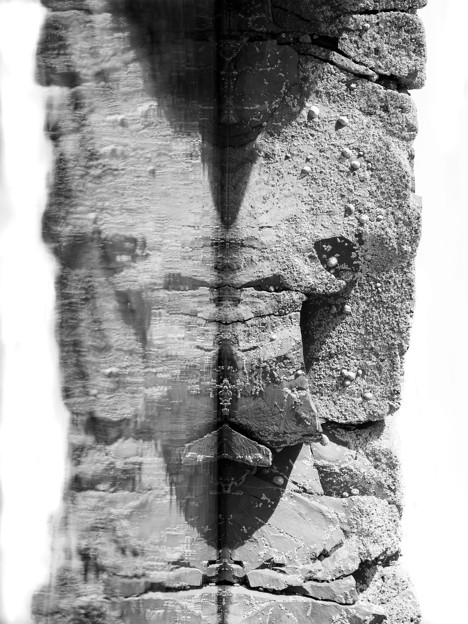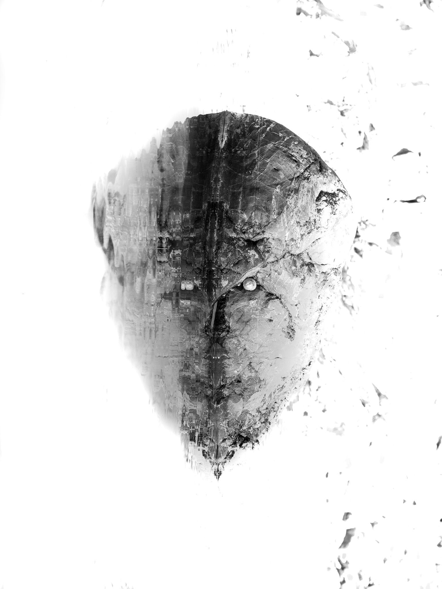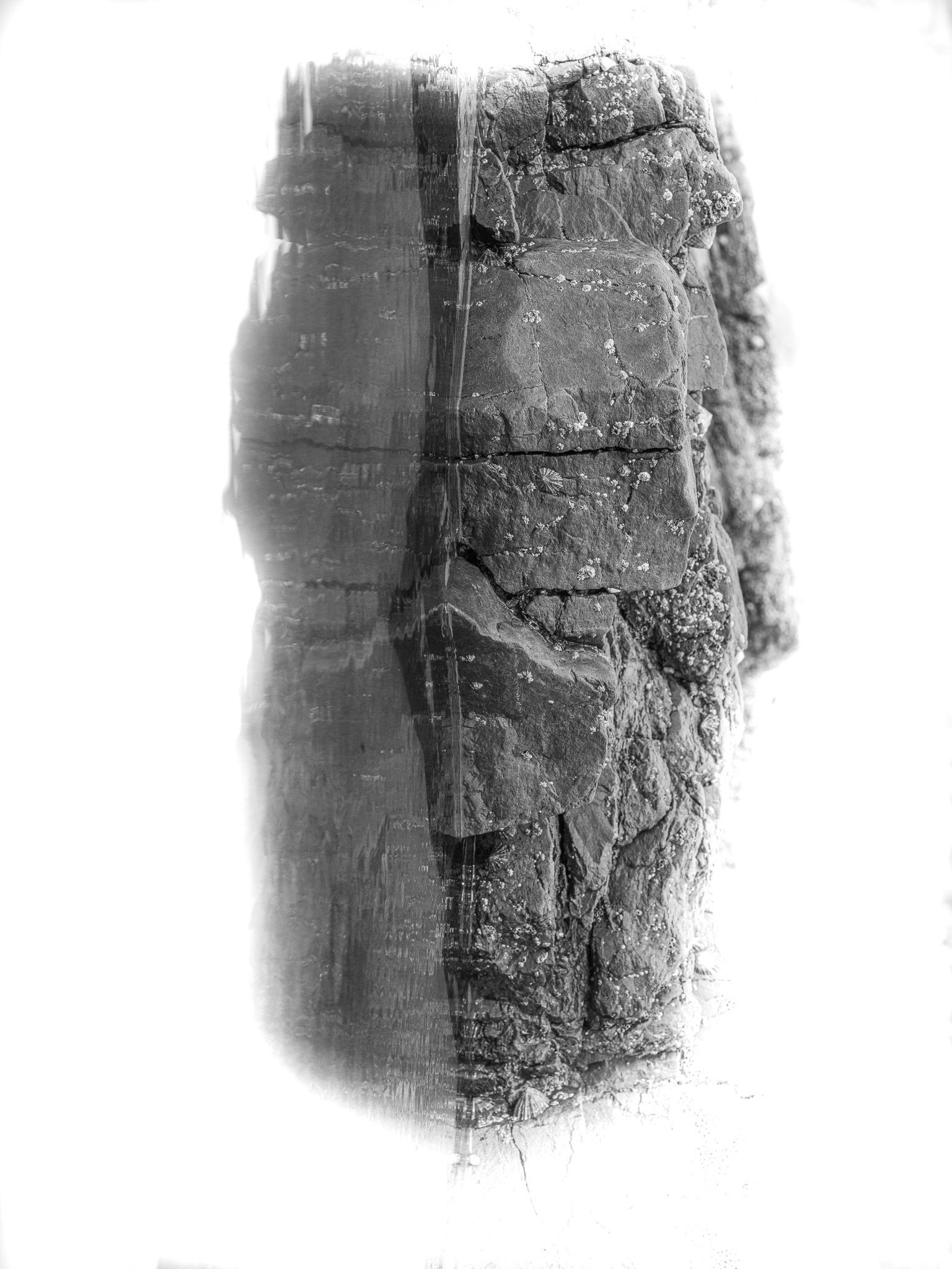 En les photographiant et en les mettant à la verticale, des créatures et des visages mythologiques apparaissent comme les gardiens de cette séparation entre le visible et l’invisible. Entre ceux qui restent et ceux qui disparaissent.